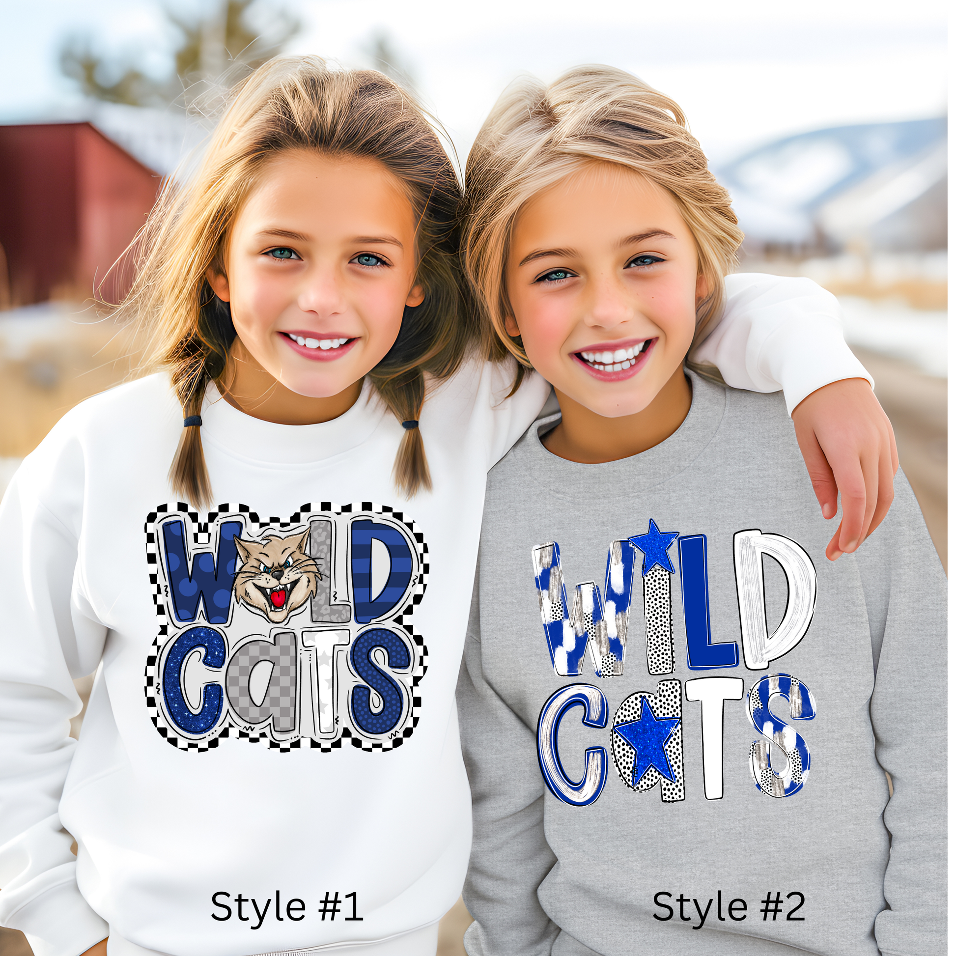 Whether you're a student, parent, or teacher, you can represent your team in style. Choose your favorite design and then pick your perfect fit: classic T-Shirt, cozy Long Sleeve Tee, warm Sweatshirt, or comfy Hoodie. Just specify which design you want in the "Special Instructions" box when ordering. Gear up and get ready to cheer on the Wildcats in ultimate comfort and style! Let's go Wildcats!