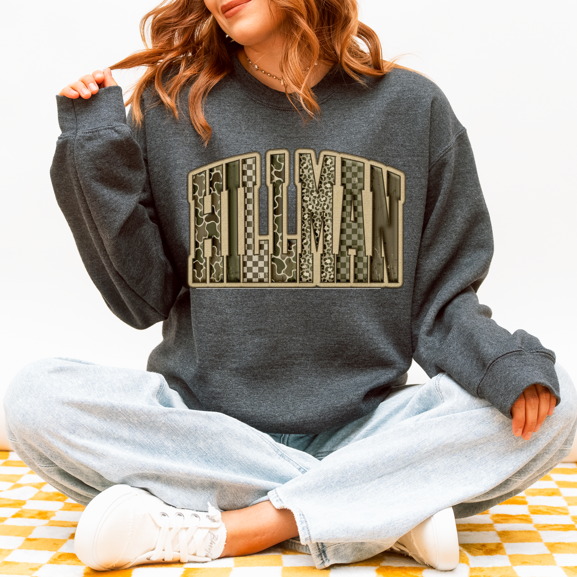 Show off your Hillman Ferry pride with the bold and unique Multi-Pattern Shirt! This isn't just another campground souvenir; it's a statement. The iconic "HILLMAN" text takes center stage, each letter bursting with eye-catching patterns like camo, cheetah print, and classic checkers.