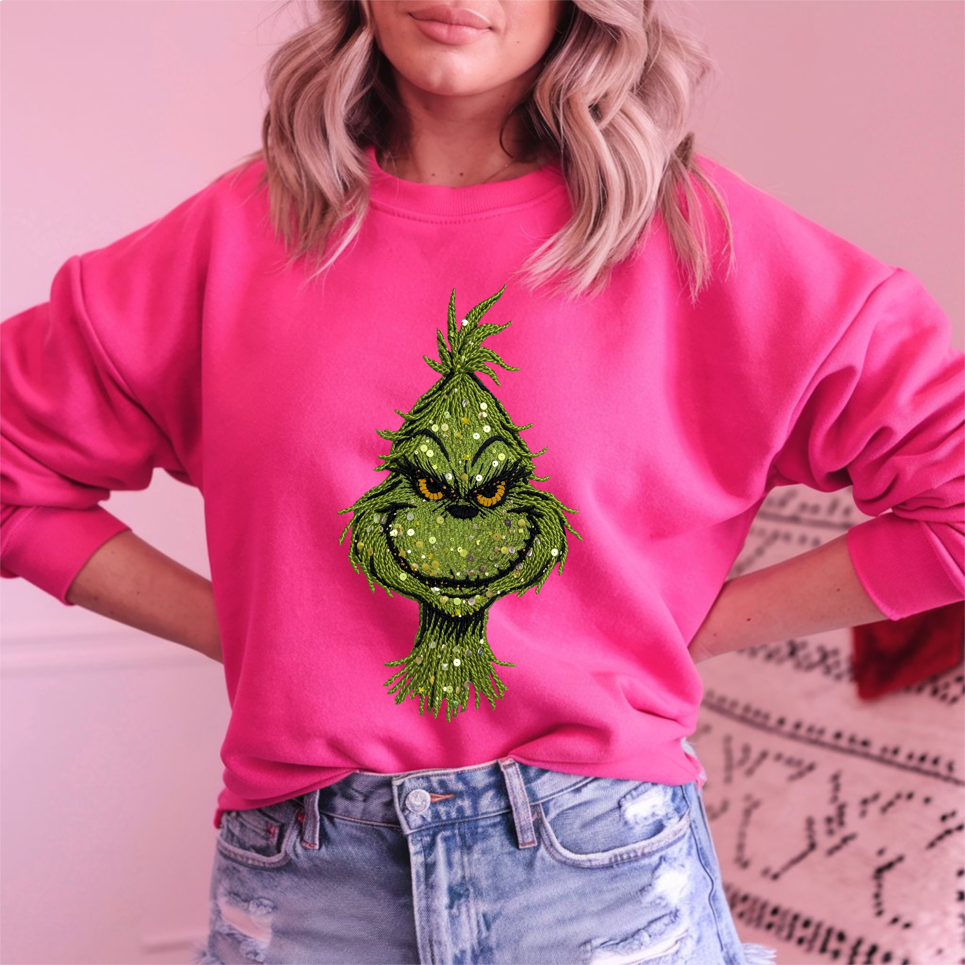 Spread some mischievous holiday cheer with our Sequin Mean One Shirt! This isn't your average Christmas apparel; it's a statement. Featuring everyone's favorite grumpy green guy, brought to life with a dazzling, realistic sequin effect, this shirt is guaranteed to turn heads and spark conversations.
